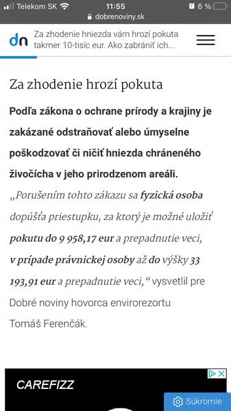 Ale stále môžeš požiadať úrady o povolenie na odstránenie tých hniezd, snáď by si to mohla zvládnuť.