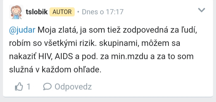 Trčí z teba urazená ješitnosť. Záujemcovia o prácu šoféra v tvojom svete stoja v radoch pred dopravnými podnikmi? U nás je ich taký zúfalý nedostatok, že DP bol robiť nábory medzi Ukrajincami (už jazdia) a taktiež zredukovali spoje. Ako by si to chcela riešiť - nútenými prácami? Znížením veku pre vodičov na 18 rokov? Pri výberových konaniach na prácu vodičov určite nebýva taký pretlak ako pri výberkách do verejnej správy - aj to o mnohom svedčí... tak obe profesie neporovnávaj.