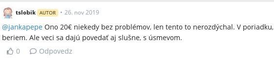 Dnes sa mi stala taká vec....Išla som autobusom a nemala som drobné. Dala som 20€. Čo všetko som si vypočula od vodiča....Pohoršovanie, či je on banka a pod. Som si vedomá, že som mohla mať drobnejšie, ale je to povinnosť? Mať drobné? Dalo sa to povedať predsa aj slušne, s úsmevom pre budúcnosť. Pokazený deň som z toho mala, z dnešných ľudí.....samá nevrlosť, nezáujem, ignorácia apod. Preboha, to kde sme? Ja aj keď mám totál nanič deň....správam sa slušne k tým, čo za to nemôžu. Možem sa sťažovať?