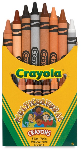 Crayola Multicultural Crayons are expressive crayon colors specially designed for hands-on learning about self, family, and community. Apricot, Burnt Sienna, Mahogany, Peach, Sepia, Tan, and Black and White for blending.