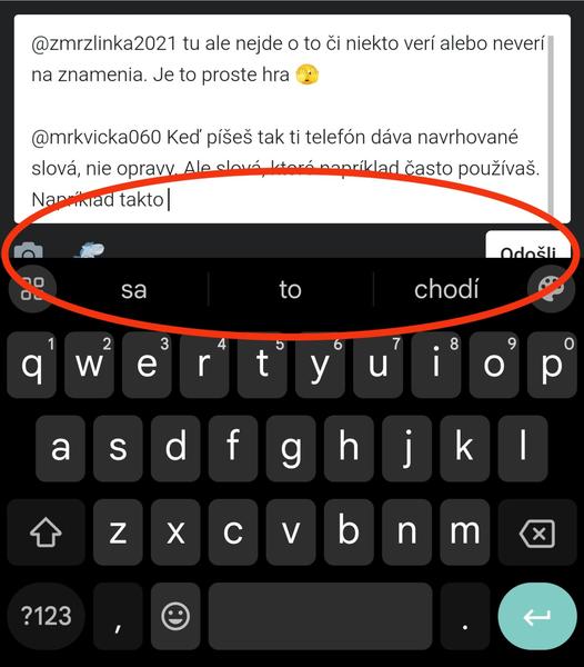 @mrkvicka060 Keď píšeš tak ti telefón dáva navrhované slová, nie opravy. Ale slová, ktoré napríklad často používaš. Napríklad takto.. prikladám fotku.