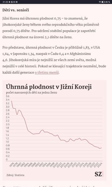 @ahhola znamená to to, že kórejská populacia má v priemere jedno dieťa, z ktorých sa časť nedožije ani pôrodu alebo školského veku. Tým pádom na ženu nevychádza ani 1 dieťa.