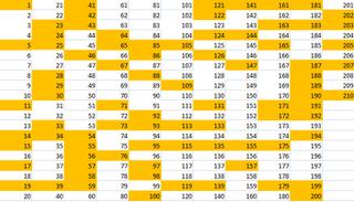 1, 3, 6, 8, 30, 37, 53, 57, 62, 67, 70, 74, 81, 99, 108, 118, 130, 160, 162, 185, 187, 197, 202, 205, 209.