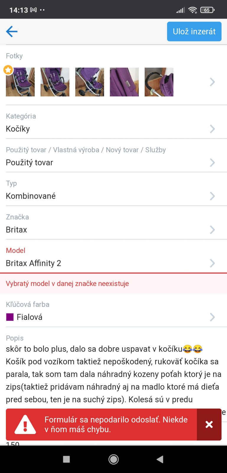 Ahojte. Prosím viete mi niekto poradiť čo mám robiť? Chcem pridať inzerát na predaj kočíka a proste to nejde že vraj daný model neexistuje ale nech tam dám hocičo z výberu tak to píše stále to isté a proste nejde ten inzerát pridať. Dakujem