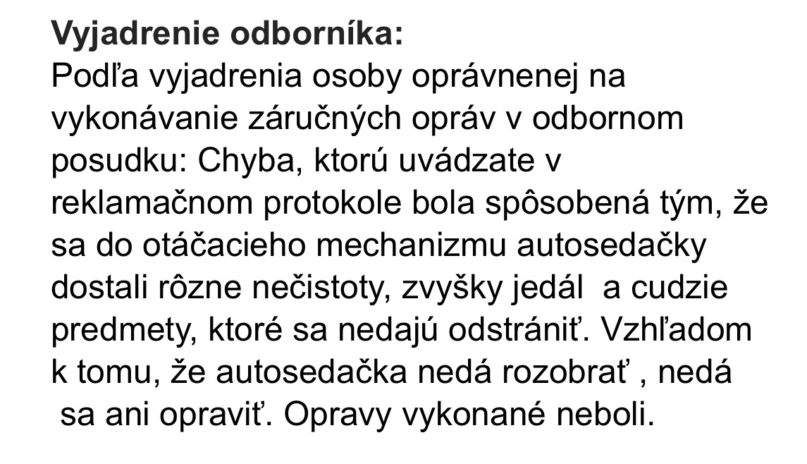 Neuznaná reklamácia autosedačky