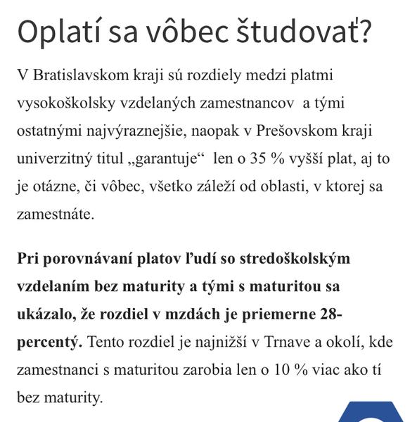 @katka700 A vzdelavanie nie nutne znamena VS. Su rozne kurzy, ktore ti pomozu zvysit/zmenit kvalifikaciu a pomozu dosiahnut vyssi prijem (napr. kurz kozmeticky, kadernicky, uctovnictvo, it tester, MS office, v marketingu napr hubspot..) Inak VS vzdelani skutocne zarabaju statisticky viac..aj ked vieme svoje o statistikach 😉...