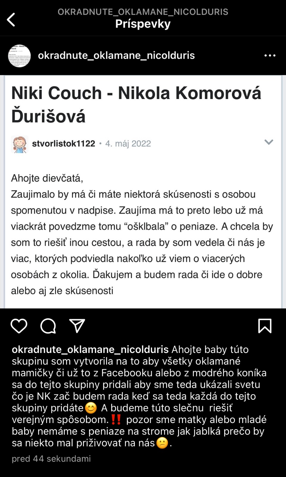 Ahojte baby a Mamičky dala by som vám do pozornosti Instagramovi profil ktorý vytvorila jedna mamička jedna sa vlastne o vytvorený profil okradnutých Báb touto slečnou bola by som teda rada keby ste sa tam pridali a aby sme verejne začali riešiť to čo táto slečna robí a jak sa krásne obohacuje na nás alebo na našich deťoch😕‼️ Dajme tomu spoločne stop ‼️