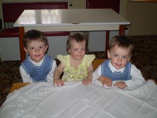 Tatolu taky krasny trojlistok to ako by boli trojcatka. Mne to strasne pripomenulo, ked moja starsia dcera bola mala, moja kmotra ma dcerku len o 3 mesiace mladsiu a jej sestra zas od jej dcerky mladsieho syna o 2 tyzdne. To ked boli spolu tak tiez ako 3-catka, tiez maju taku fotku. Chudacik tvoj dobracisko ako sa vravi "Pre dobrotu na zobrotu", ostane aj hladny 😀 😝 ale snad sa nad nim niekto zlutuje a nieco mu kupi.