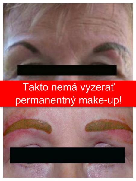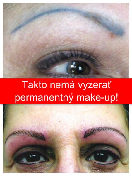 Pozor na amatérov a neodborníkov v tomto obore, zodpovedne si vyberajte, kto vám vytetuje permanentný make-up, aby z toho nestala doživotná trauma, nemuseli ste podstúpiť bolestivé odstraňovanie laserom, po ktorom zostanú jazvy navždy. Ak je prmanent natetovaný plytko do pokožky-1,2mm, tak sa dá opraviť odstránením a následne natetovaním nového permanentu. Ale ak je natetovaný do hĺbky 2-3mm, dá sa povedať, že ide o trvalé tetovanie (navždy) a tu pomôže iba odstránenie laserom. Prikladá fotografie žien, ktoré trpia pre svoj vzhľad a zopár z nich ma osobne navštívili 😉