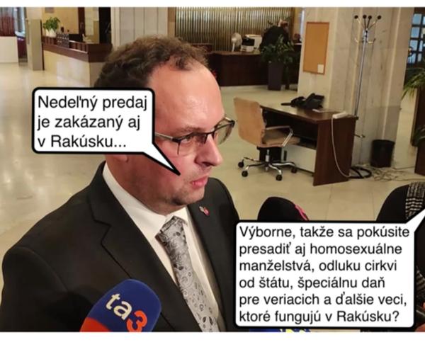 Jáááj, lebo katolibanci a ich svätá NEDEĽA. Však aspoň uznaj, že to v parlamente podávajú kresťania (veriaci) a ani omylom nepriznajú, že to je kvôli viere, ale vymýšľajú rôzne omáčky, ktorými to chcú podoprieť. Je to z ich strany neúprimné, farizejské a de facto v rozpore s vierou (klamať sa nesmie).
