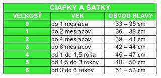 a inak, máte dáku tabuľku s rozmermi pre čiapočky (priemer placky + dĺžka + obvod od 0mesiacov-x mesiacov)?