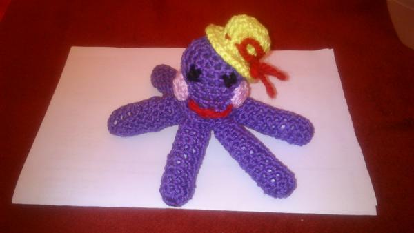 vidím že si každý užíva pekné počasie, to len my trčíme doma s chorými deťmi ☹ Mala som síce čo robiť, ale radšej by som bola deti zobrala do záhrady. Ale aspoň som dokončila aj chobotničku. Dúfam že sa pôvodná "autorka" nehnevá že jej kradnem nápady, ale je to čisto pre vlastnú potrebu 😉 Tak tu je...