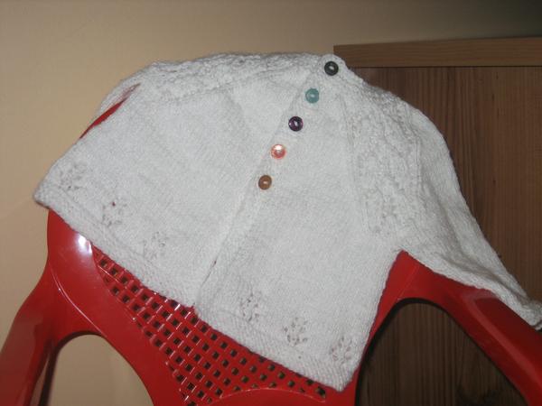 tak som konecne prisila gombiky na svetrik, minula som zo svojich starych zasob 5 klbiek bielej red heart baby na svetrik pre svagrovcov a pre Jurka, ten je dvojmo, ciapka pre susedovcov, nechala som ju ako bola a nasila vtaciky a to je tusim aj vsetko, dnes som minula dalsie dve cele a zbytok z dalsieho klbka len to este nie je hotove tak foto neskor. musim sa mm pochvalit ako som to pekne minula 😵