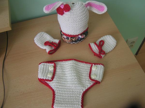 tu je nasa prva usianka, este ju budem musiet podsit, dost je derava a asi by som sa bala to dat mlademu v zime na usi taketo. je to tento navod http://www.mimibazar.cz/navod.php?id=5283 hackovane z red heart baby dvojmo, hacik c 4,5 😉