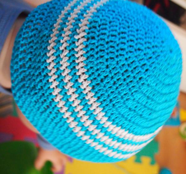 @werunka21 To je super schéma, já dělala pruhy po 4 DS místo 6DS, máme malou hlavu, ale stejně na konci jsem asi ujela k obvodovým bílým pruhem dokola moc a přejela jsem to a pak mi třetí znak (ten nejmenší) vycházel do toho pruhu dokola a už to nebylo pěkné, navíc, jsem se začala v těch přízích ze zadu ztrácet a tak jsem to vypárala po logo a začala znovu jen s bílými pruhy. Já mám zkušenost při navazování nití na uzlík, že se mi to vždy povolí a pak to musím nějak zaháčkovat nebo vypárat. Asi neumím ten správný uzlík. Obrázek si uložím, vypadá to moc pěkně. děkuji
