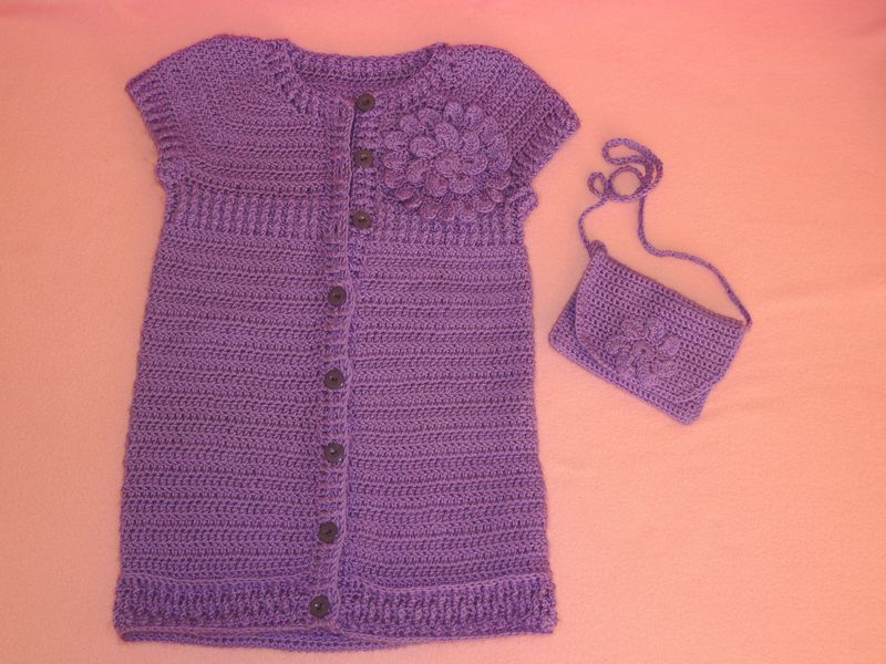 Potom som si pocet stlpikov vydelila styrmi (ako to vychadzalo, plus minus autobus) - uhackovala stvrtinu stlpikov, potom spravila retiazku - to na rukav (pocet ociek testovala priamo na modelke), vynechala som asi 6 stlpikov a tam retiaku pripojila pevnym okom a pokracovala chrbtovu cast, az ku dalsiemu podpazusiu, opat retiazka, pripojila a dokoncila normalne predny diel. Dalsi riadok som robila normalne cez vsetky stlpiky a do retiazkovych ociek tiez dlhe stlpiky. Nasledujuci riadok a vsetky dalsie som vzdy nad pazuchou spredu aj zozadu (teda tam, kde sa predtym zacinala retiazka) zhackovala 2x 2 stlpiky do jedneho. (dva akoby z rukavovej casti a dva z hrudnej). Tak sa tvorilo plece. Na vystrih to bolo jednoduche - z kazdej strany v potrebnej vyske vynechat par stlpikov a na zaciatku noveho riadku zhackovat dva do jedneho. Potom este plece aby bolo zaoblenejsie, som uz vyslvoene improvizovala, zhackovala aj trikrat dva stlpiky, alebo tri stlpiky od jedneho 😅 V zavere som pokracovala olemovanim vystrihu a gombikovej legy - to je z zas pruzny vzor - predny a zadny stlpik na striedacku. To bolo vsetko v jednom kuse. Na rukavoch som potom dorobila patenty z pruzneho vzoru. Kvietok je podla tohto http://www.mimibazar.cz/navod.php?id=10120 Neviem, ci som to zrozumitelne popisala, mozno sa mi to podari nakreslit, uvidim...