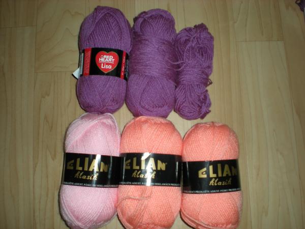 3. foto = red heart lisa fialová - spolu za tie 3 klbká cena 1,20 eur (jedno klbko cele, to druhe je skoro cele a to tretie je asi tretina, elian klasik cena za klbko 0,80 eur