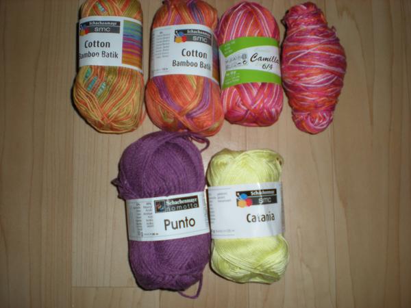 6. foto = cotton bamboo batik cena za kus 3,50 eur (je to taka drahsia vlna), camilla jedno klbko cele a to druhe je takmer cele, takze spolu za 1,75 eur; potom punto 1,30 eur a catania 1,50 eur