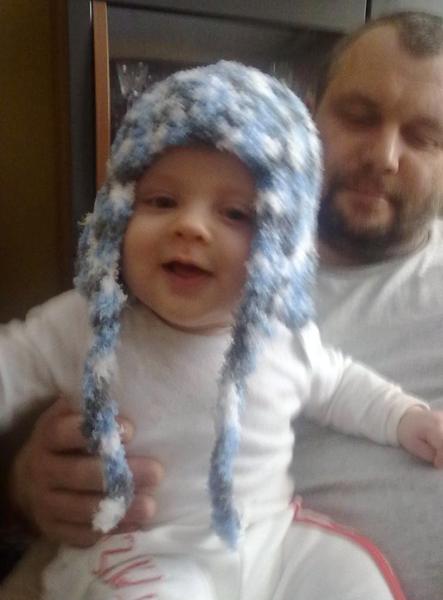 ... moja prvotina... čiapočka pre syna... vlna DAJA od Vlnika
