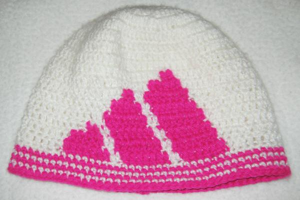 Konečne som sa odhodlala a našla si čas pohľadať v mojom PC fotky mojich dielok a pridala som ich do môjho albumu. Posledné sú adidas čiapky, čo som robila narýchlo, bieloružovú v piatok ráno a modrobielu v piatok večer. Keďže sme cestovali tak som ich chcela mať obidve hotové...