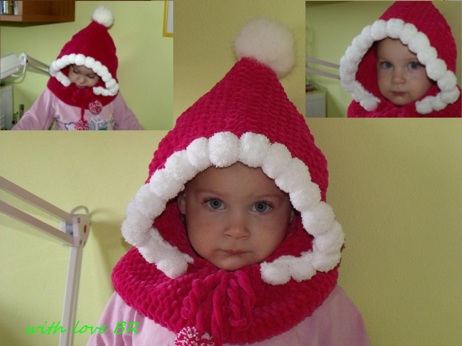 kapucku som obháčkovala s KS a našila bambuľky