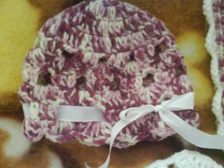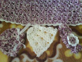 a moje vytvory pre sesternicinu dcerku co sa narodi v maji 😉 decka, a dve ciapocky, jedna tenucka a jedna hrubsia a celenka s prepinatelnym zapinanim aby sa dal nastavit obvod 😉