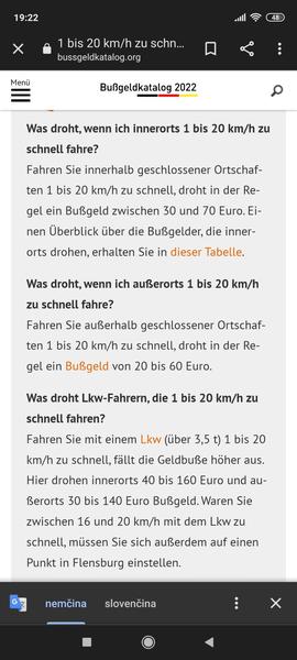 20km mimo obce nie je na body / vodicak. Dostane len pokutu. Za 21 km/h v obci som tetaz platil cca 100 eur- bez straty bodov. A Výška pokuty záleží od bundeslandu. Je to rôzne.