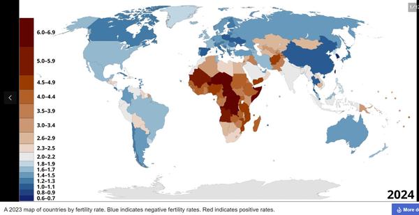 Nielen na Slovensku, to je celosvetovy trend. V prilohe stav z 2023 podla poctu deti. Modre krajiny vymieraju, cervene ich preziju. Ale aj tam je klesajuci trend. Plati, ze cim vyssia zivotna uroven, tym nizsia porodnost.