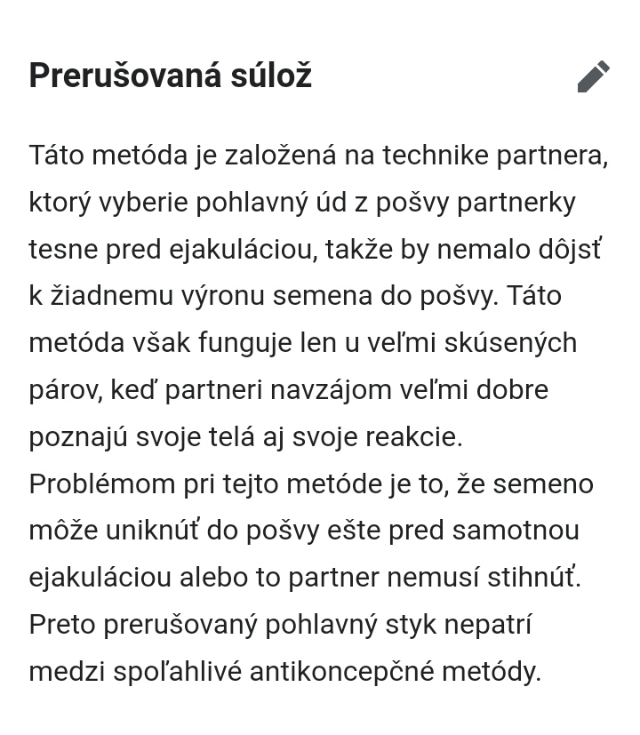 @minenkak ak by bola metóda prerušovanej súlože bez spermií v pošve ženy, tak by bola 100% účinná a sama si napísala, že 100% metódu zatiaľ nemáme....