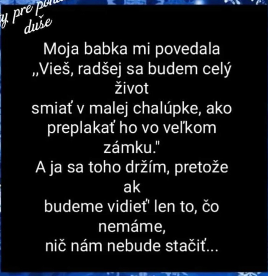 @h2 hej. Môj prvý muž bol a je stále taký. Stále pracoval, hnal sa za peniazmi aj preto sme už bývali manželia. Nevedel ako deti vyrástli, nebol nikdy na rodicku, nebol s nami na dovolenke, lebo chodil z jednej práce do druhej. A nemusel, proste chcel. Mali sme všetko, ale on chcel stále viac a viac. Na otázku prečo, mi povedal, nikdy nechcem aby sme sa mali tak zle ako sme sa mali keď sme boli deti. Chápem, ale takto prišiel o všetko. O rodinu, zdravie, o šťastie. Prešlo 25 rokov, sily ubudli, ma síce lepšie auto ako my, viac peňazí na účte, ale deti k nemu nechcú chodiť, lebo si s ním nemajú čo povedať. Teraz plače do telefónu. Ma prachy a? Proste chcela len vedieť prečo to ľudia robia.