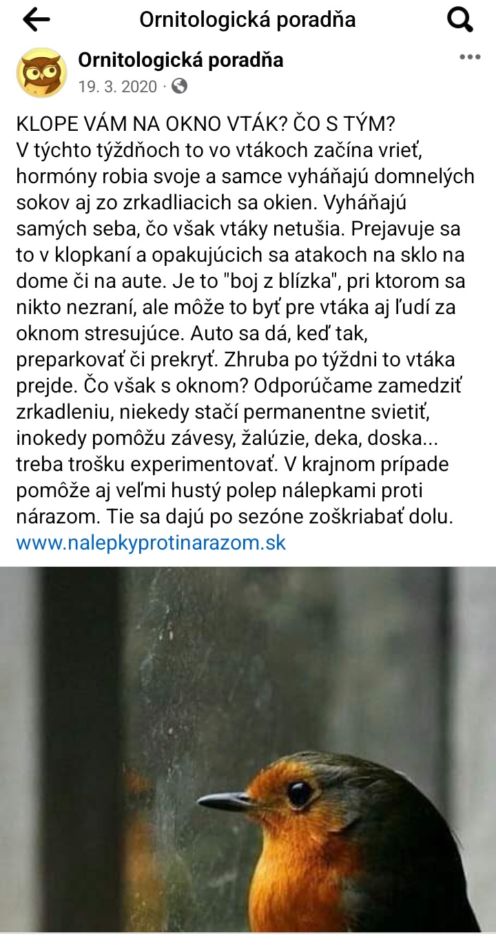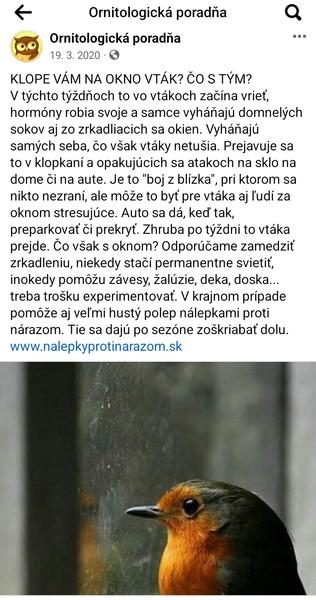 Stretol sa s tým niekto? Od rana opakovane prilieta trasochvost biely na parapetu a nalietava do okna. Najprv som si myslela, že je to malý vtacik co sa učí lietať, ale s lietanim problém nemá. Nevie niekto co ho k tomu vedie? Na nete som nič podobne nenasla