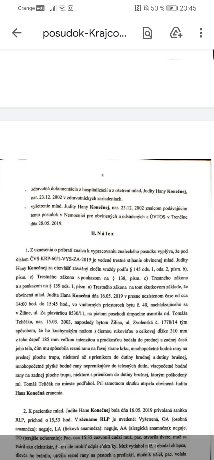 no dievcata, mam dost, ako som este 0,001 percenta pochybovala o jej vine, uz nepochybujem. Rodicov komentovat nebudem, to, ako sa k tomu stavaju, -presne mozu za to, ze vychovali taku z...u. Ako tu uz niekto mudry spominal, Judita je unikatny pripad sociopata, teraz je (bola) presne v tej faze miluckej pipipi Juditky, urcite ju tam, kde je vsetci maju radi, ako spomina, ze "oblafla" psychiatra placom, mam dost, (medzi riadkami, kto cita..), berie to cele ako dake dobrodruzstvo, dovolenku, tabor a este sa citi ako hrdinka, preto aj ten jej plac na poslednom pojednavani, tu pocut, ako si je ista, ze ju dostanu z toho(ako vzdy doteraz..) a nedostali, prvy x to nevyslo...ak sa aj dostane von, bude to velmi, velmi nebezpecne pre kazdeho v jej okoli.
