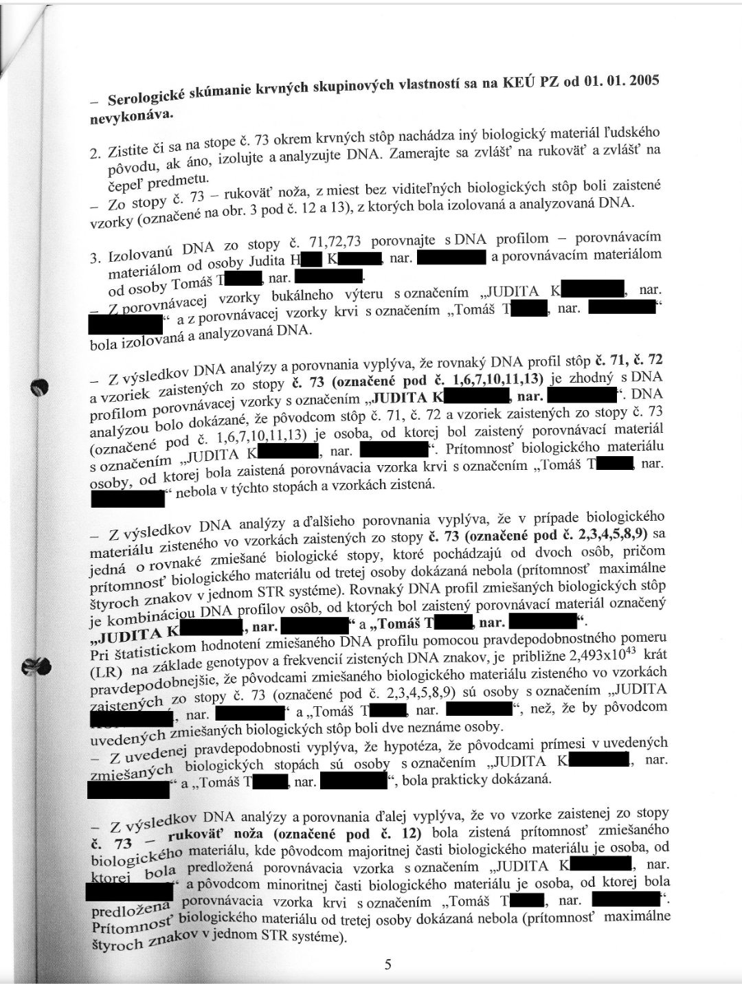 @kristina284 Nůž B2 a vyznačené izolace, které prokázali pouze smíchaný profil DNA Tomáše a Judity, kdy majoritní podíl byl od Judity a v některých izolacích se ani žádný podíl DNA Thomase nenašel.