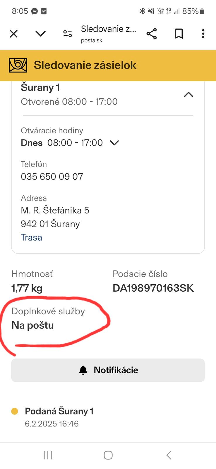 všimni si ten čas, v Jelšave uložený 7.39 a v preprave 7.56 ho odoslali zas preč, musiš čakať deň, dva, že kam ho odoslali, alebo omylom, alebo na nejake ine miesto ho poslali, ale to sa dozvoeš až na druhý deň