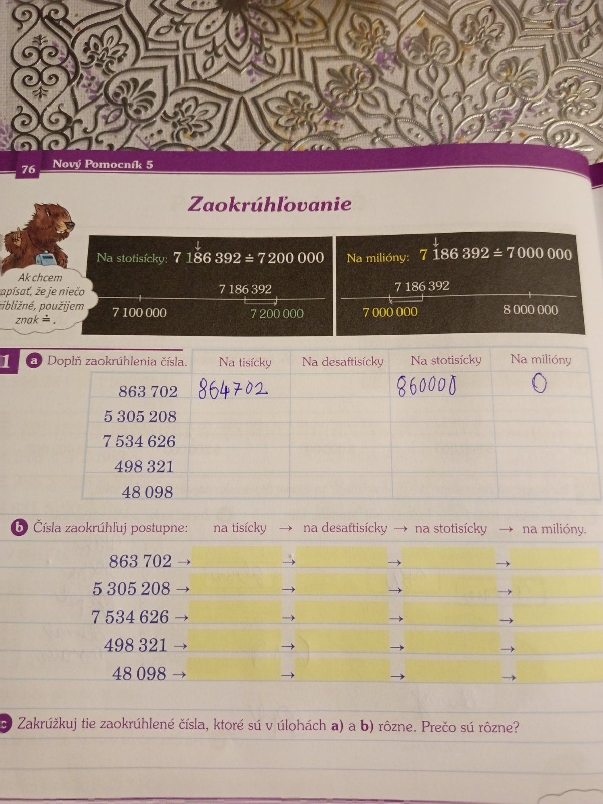 @maminkamiladka 864 000, 860 000, 900 000, milion tam nieje vsetko co ma cislo za nad 5 ide hore a pod 5 dole .. co je v cisle 1000 snad uz vies