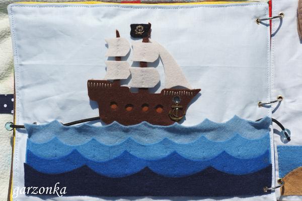 Usila som este tuto knizku s aktivitami (znama pod nazvom Quiet Book)....jednotlive strany su bud z bavlny alebo z filcu. Spojene kniharskymi kruzkami. Urobila som u pre najmladsieho (3,5 r) ale zabavili sa aj starsi chlapci (9 a 7).