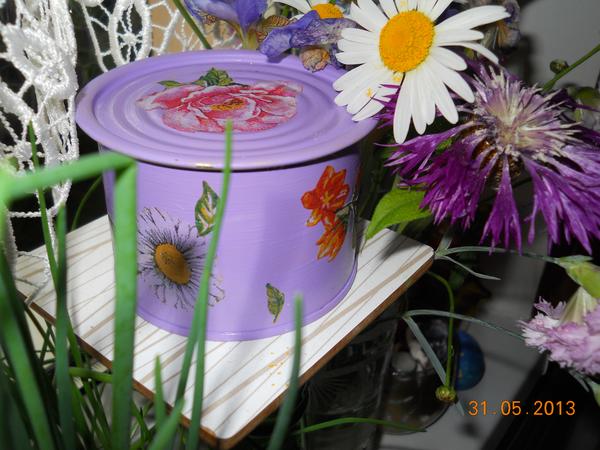 @nuonuon netreba nic specialne chystat, plechovka sa len natrie akryl.farbou, idealne tou s lakom, potom uz len p.p. prelakuje, ja pouzivam farby aj laky zn.nerchau.