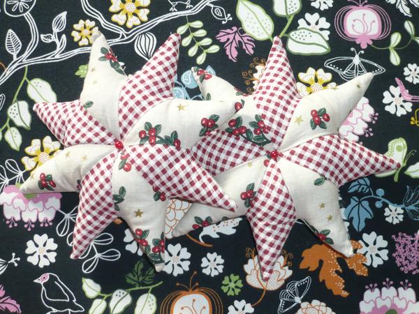 pridavam cosi z mojho posledneho sitia 😉 vankus z kurzu, dalsi mame teraz v sobotu, hexagonove podsalky, hviezdy na stromcek a organizer pre kamosku
