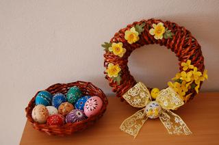 skusala som nieco k Velkej noci, pletenie a sadrove odliatky (kraslce v kosiku su ale dielom mojej maminky)