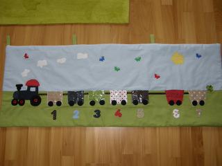 No a prikladam fotku toho vlacika - kazdy vagonik je jeden den v tyzdni - je to ocislovane preto, lebo stvorocne deti si skor pamataju cisla ako pismenka. Do vagonikov sa vklada taka mala sladkost - je to zvrchu nezosite - tam sa vklada od pondelka do piatku, aby dietatko vedelo, ze ked je tam sladkost, tak sa ide do skolky.....V sobotu a nedelu sladkost nie je 🙂 Na kazdom vagoniku v tyzdni je nasity este igelit /inak strasna praca!!/, do neho sa vlozi obrazok nejakej aktivity, ktora je pravidelna a je v jeden den v tyzdni - napriklad v utorok tam dam logo Levika - materskeho centra, kde mava tanecnu, aby bolo jasne, ze v ten den sa ide do skolky a potom na tanecnu 🙂 🙂 Sobota, nedela je aj viditelne oddelena aj vagoniky su troska ine.....