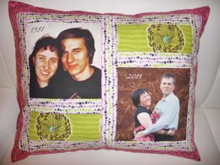 Uz som dosila aj ten vankus, co som spominala, ako darcek k 30. vyrociu svadby pre kamarata. Usitie sa mi celkom podarilo, ale nakoniec som nebola velmi spokojna s tou zelenou latkou, co som pouzila 😒 Dufam, ze sa im to bude aspon trochu pacit.