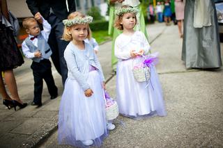 Ušila jsem potahy na sedačky a pak jsem se dala na šaty družiček (s růžovo-fialovou mašlí a kytičkou na s bílýma perličkama a organzovou suknicí), jelikož jsem přesně věděla, jak mají vypadat, ale neuměla jsem je přesné najít za solidní cenu 😀 Byla to odvaha ušít 5-tery šat, ale nesmírně mě to chytlo! Už se těším, až budu moci (doufám, že brzy) šít věci jednou na pro naše malé 🙂