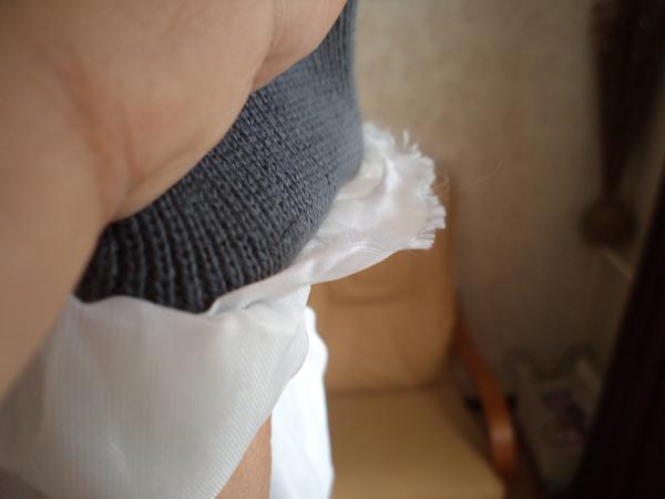 tak pod tým poškodením vidíme toto na druhej fotke,je to trošku presahujúca látka z podšívky,pani stále dookola písala že popáraná podšívka,potrhaná podšívka-toto beriem ako zavádzanie,toto je úplne niečo iné,bunda nie je poškodená,v inzeráte bola bundička detailne pofotená aj s visačkou na ktorej je vidno aj značku výrobku aj veľkosť,cítim sa ukrivdená a pani ewana77 klame a zavádza-toto je môj názor,pýtala sa ma či má bundička nejaké poškodenie a potom prišla s tým že je bunda poškodená a chce ju vrátiť,logicky: pýtali by ste sa na novú vec,ak ju niekto predáva že či je poškodená?či??no ja asi nie,a takto to asi dotyčná pani rieši,takže bundu ktorú som jej poslala a ona mi ju po mesiaci vrátila- asi sa opakujem.NIEJE POŠKODENÁ!!!