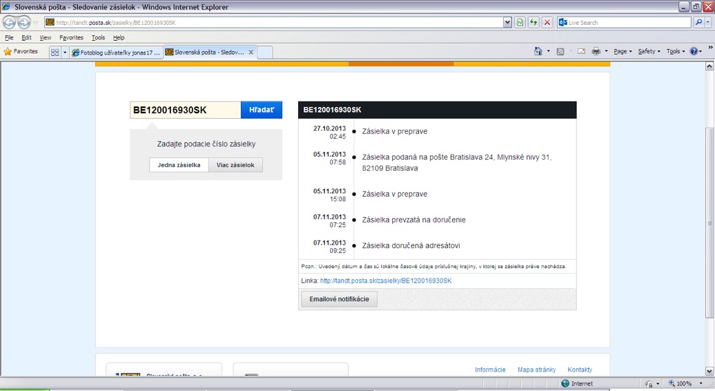 ad1) nasledujúci (prvý) obrázok je o zásielke poslanej 1. triedou. čestne priznávam, že po dni podania nasledoval víkend