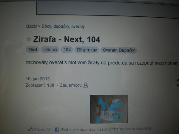 ...pyžamko malo byť NEXT-č.104...nosené ale v dobrom stave.......pyžamko ale nebolo next,nejaká čína,vľkosť 86!!....deravé,flakaté a plesnivé!!!!............pani som kontaktovala,tak dúfam že sa ozve.....ja nedokážem pochopiť iba jedno...prečo píše next,ked je to čína.........prečo píše č.104...ked je to 86............... 😠 😠 😠 😠 ....kto mi toto vysvetlí,už som unavená stakýchto ženských....ved to nie je normálne vedome klamať,čo čakala,že to nechám tak??????................pripájam foto na posúdenie.....