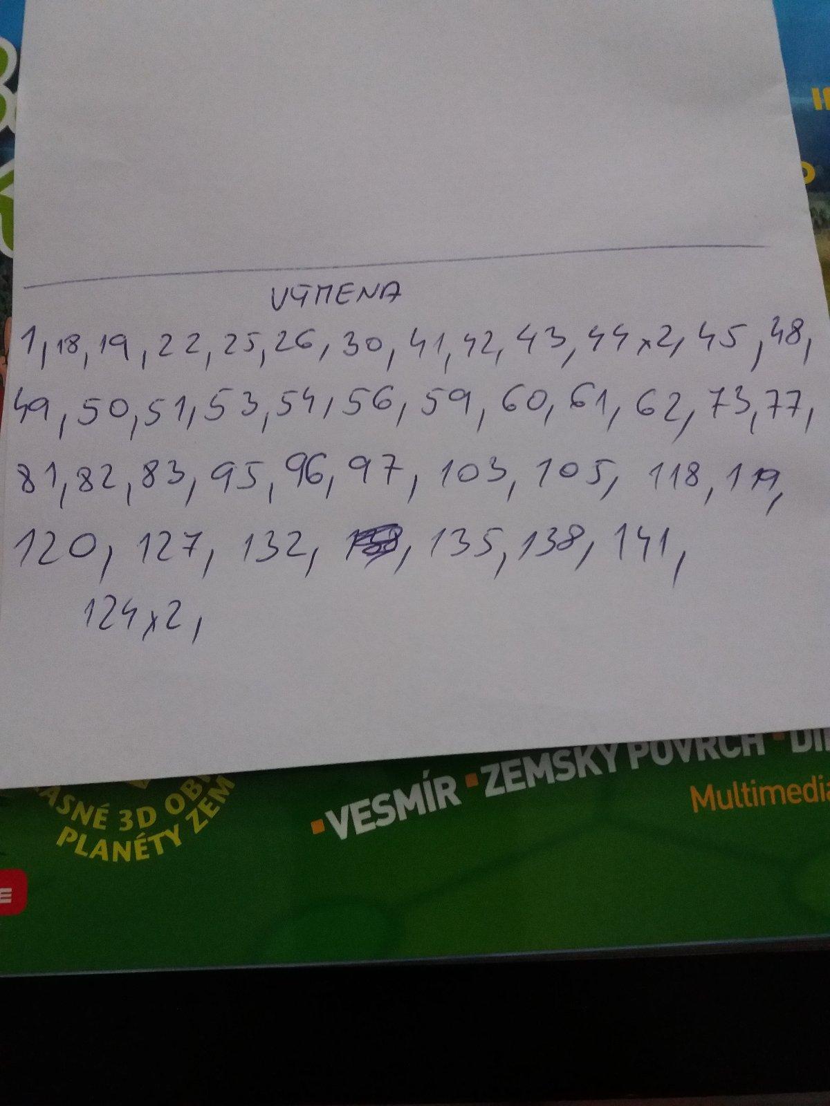 CHÝBAJÚ NÁM: 1, 15, 19, 28, 58, 86, 103, 104, 106, 108, 109, 127, 134