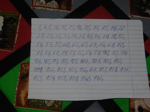 Potrebujem:4, 6, 12, 19, 22, 24, 25, 27, 33, 35, 39, 42, 43, 48, 49, 50, 52, 56, 61, 69, 74, 78, 79, 81, 86, 87, 92, 94, 99, 102, 108, 113, 115, 122, 123, 124, 127, 129, 133, 135, 137, 139, 142, 144.
