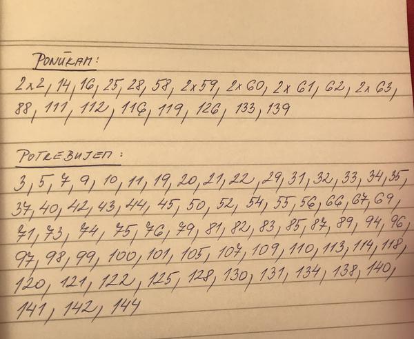 @oriesok Máte prosím vas ešte ciselka 31, 86, 105, 109? My vám môžeme poslat: 12 17 74 85 115 127
