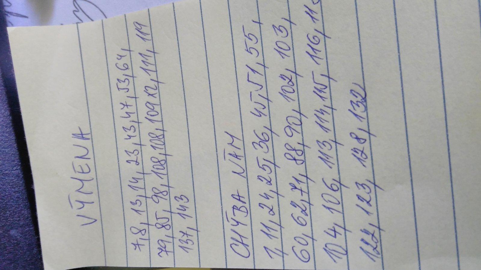 A my potrebujeme: 2, 9, 11, 13, 14, 30, 31, 36, 40, 58, 60, 61, 64, 68, 69, 74 ,75, 76, 80, 91, 92, 97, 98, 107, 108, 109, 119, 132, 135, 136