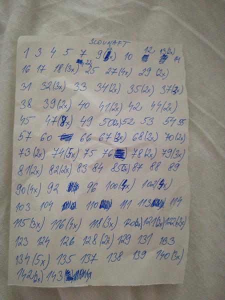Na výmenu máme - 1,2x12,16,17,2x29,41,2x43,44,47,3x49,50,53,54,60,64,65,66,71,72,74,752x82,3x83,85,86,87,2x89,92,6x96,3x97,98,4x99,102,103,108,110,116,120,124,128,130,131,134,138,142,4x144